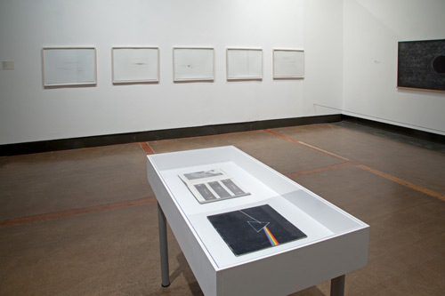 Accompany the installation is the Dark Side of the Moon LP cover from the record used in the installation, a LIFE book titled "THE UNIVERSE" and photograph of the orbiting light rings.