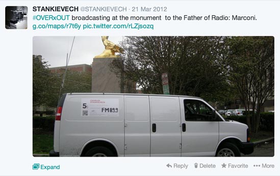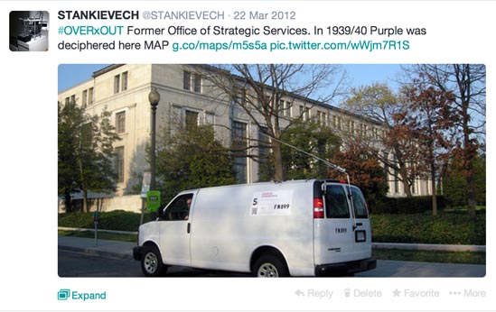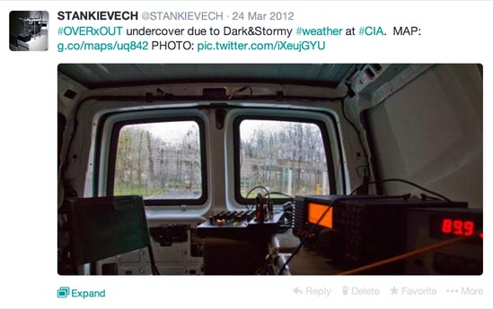 DC Commission for Arts and HumanitiesA mobile listening station roving to historically significant sites of the intelligence community across the District (and extended zones). The public will be invited to listen to the stream of real-time radio signals captured in the ether above D.C., mixed by the artist using a customized equipment array.